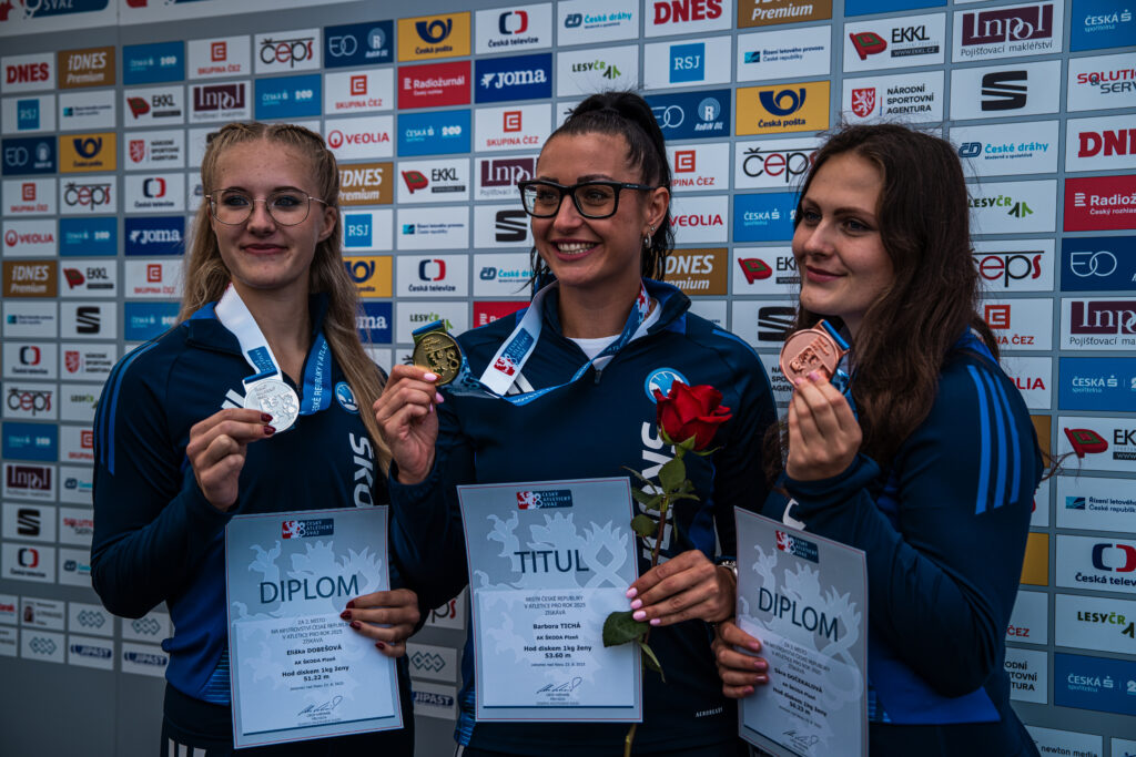 Naprosto suverénní byli závodníci AK ŠKODY Plzeň v diskařském kruhu. Soutěž žen ovládla Barbora Tichá výkonem 53.60 m, stříbrnou medaili vybojovala její tréninková kolegyně Eliška Dobešová, jejíž nejdelší pokus měřil 51.22 m, a díky výkonu 50.23 m si na krk pověsila bronzovou medaili rovněž svěřenkyně Lucie Plašilové Sára Dočekalová. V mužském klání skončil na stříbrné pozici Michal Forejt, který poslal náčiní do vzdálenosti 57.76 m, a jeho dvojče Jakub Forejt si připsal bronzovou medaili výkonem 57.68 m. Vrhačskou dominanci potvrdili také oštěpaři. Na druhém místě skončila stříbrná medailistka z nedávného ME do 22 let Petra Sičaková (57.34 m), bronzovou medaili vybojoval výkonem 76.60 m Jan Výška a Josef Šindelář bral díky svému nejdelšímu pokusu 70.07 m páté místo. To nestárnoucí vrhačka Lenka Valešová vybojovala svou 26. medaili na seniorském národním šampionátu, když výkonem 61.72 m v kladivářském kruhu skončila na třetí pozici. Druhý den přidala ještě 6. místo z koulařské soutěže (14.83 m).
